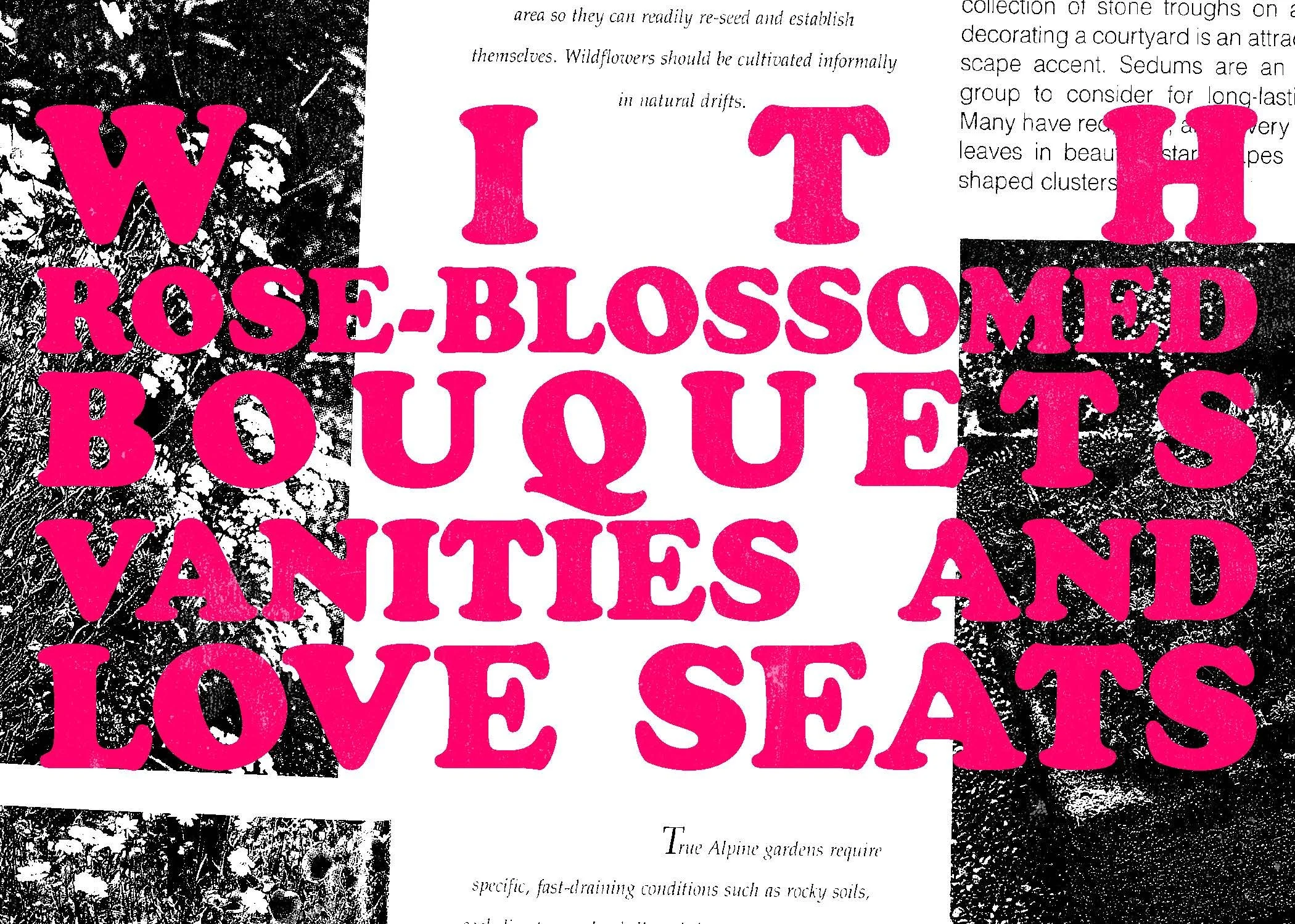 Scans from a book about home gardening mixed with vibrant text about moving on and letting go taken from the song “The Radiator Hums” by Cursive.